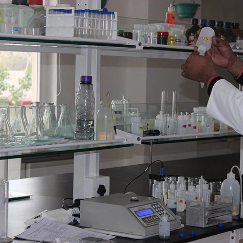 The soil testing laboratory is well equipped and uses Pusa STFR (Soil Test and Fertilizer Recommendation) for analyzing the soil samples and training of the trainers. Pusa STFR Meter has been developed at IARI and is licensed. It has a programmable colorimeter for analysis of soil parameters quantitatively. This soil testing kit analyzes 14 major and micro nutrients and also makes crop-specific fertilizer recommendation with tentative dosage for 100 crops within a short time. The farmers are made aware of the importance, precautions and methods for collecting soil samples for appropriate nutrient analysis. This helps them to achieve higher yields and keeps the soil fertile.